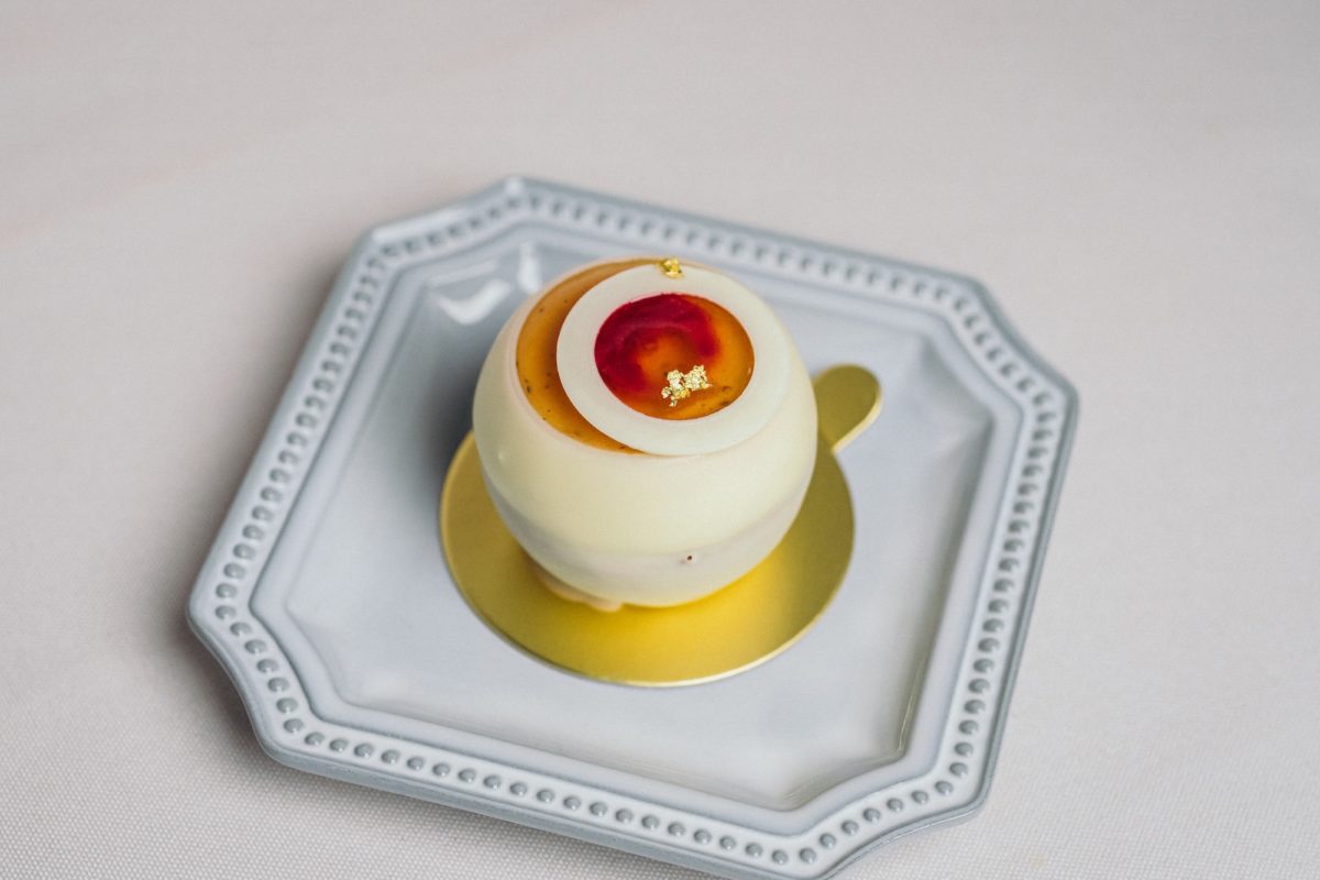 紅茶には、香り高いアールグレイを使用。中にはベリーのソースを忍ばせ、味わいの後半に軽やかな酸味を添えています。仕上げに加えたリキュールが、甘さの中に大人の余韻をもたらし、食後まで印象に残る一品です。